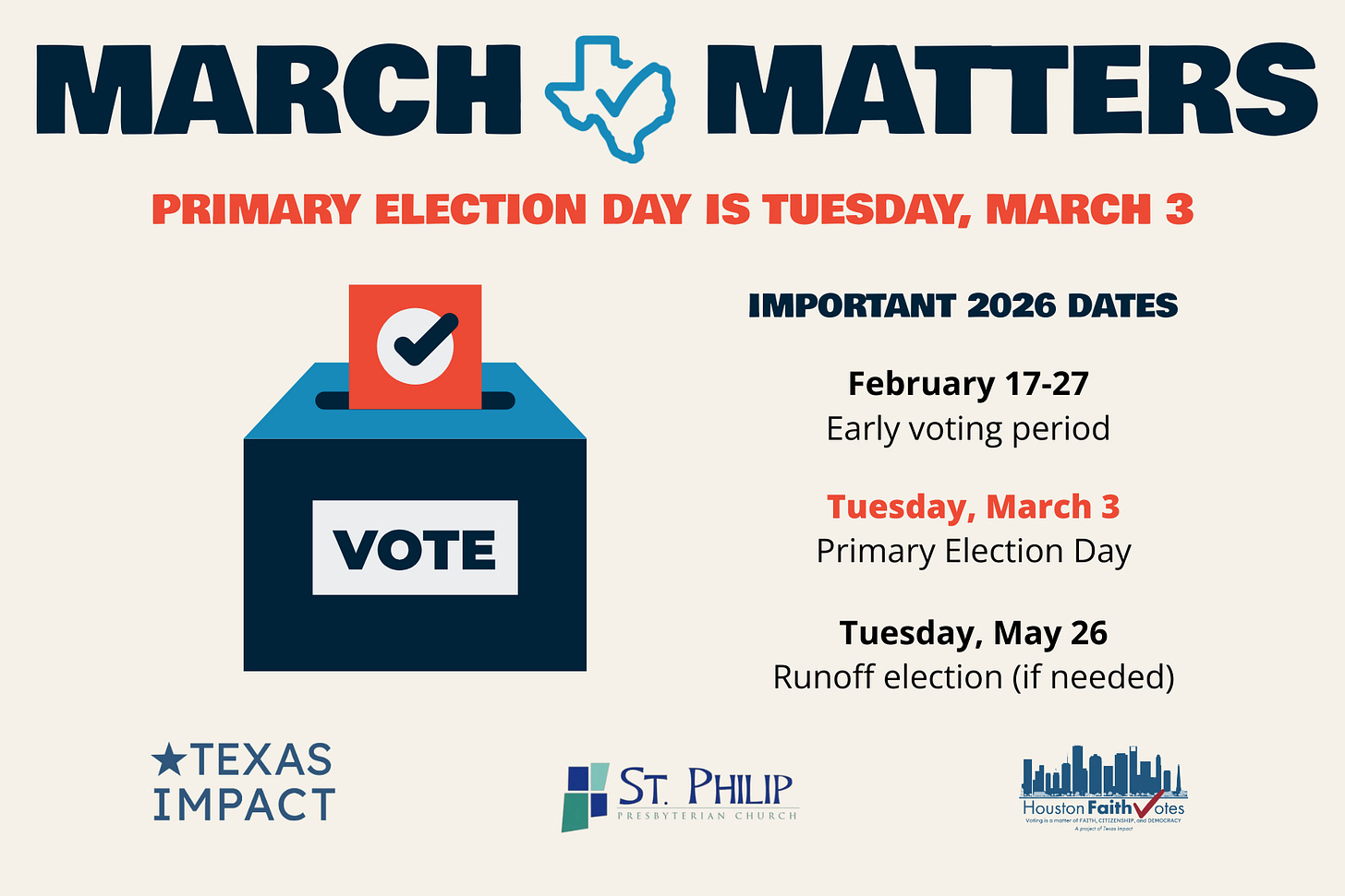 Given the large field of candidates, run-off elections are expected in a number of races. The primary runoff election will be held on Tuesday, May 26. The winners of the primaries (and runoff elections, if needed) will appear on the ballot for the midterm election on Tuesday, November 3, 2026. Stay tuned for ongoing information and updates as we move forward.